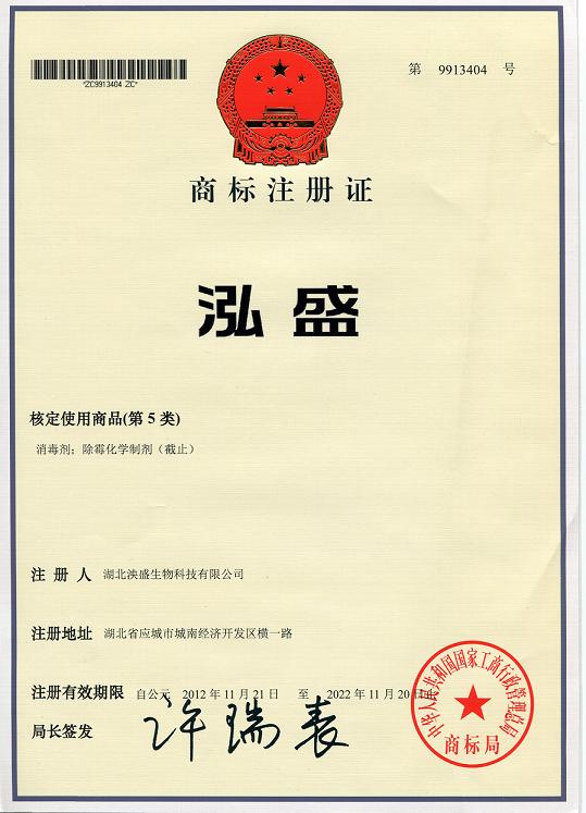 泓盛商标注册证